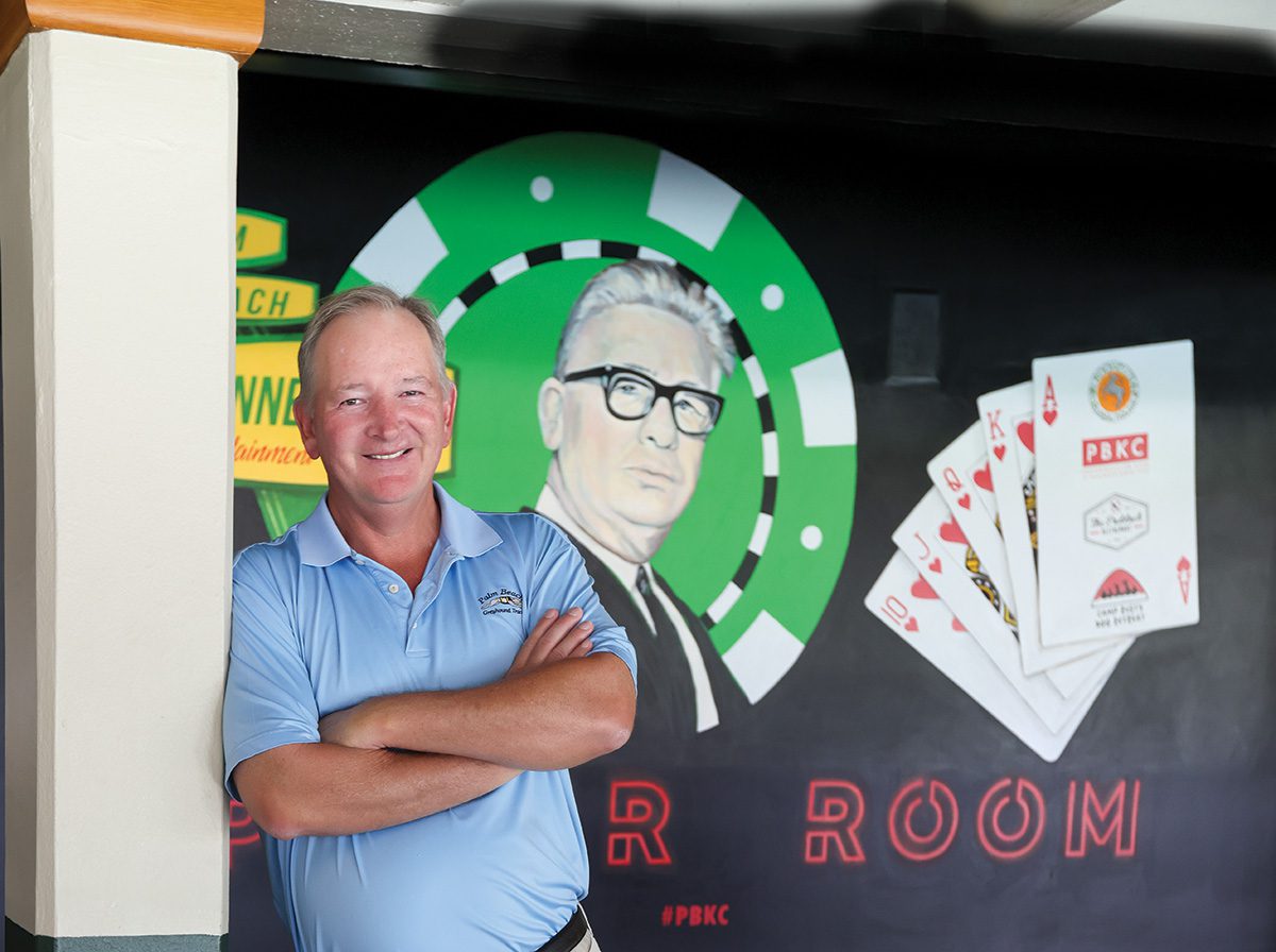 They are everywhere, that is, except the track itself. Greyhounds have not raced at Palm Beach Kennel Club since Dec. 31, 2020, owing to the passage of Amendment 13, in 2018, which banned dog racing in Florida. But the legacy of the institution is inescapable, and to tour Palm Beach Kennel Club today is to find a once-towering institution both honoring its history and forging a new future. Part of the latter approach has meant truncating its branding to “PBKC.”