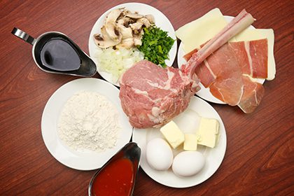 Pre-heat oven to 400 degrees. Heat heavy-bottomed, oven-proof sauté pan, and add enough oil to coat the bottom of the pan. When oil is hot, sauté veal for approximately three minutes per side, then top with prosciutto and mozzarella. Place pan in oven until the cheese melts. Remove veal from oven, plate, nap with marsala-mushroom sauce and serve.