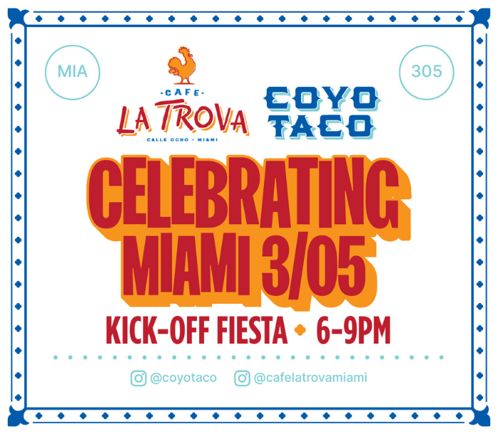 In spirit of the collaboration, COYO Taco will host a special kickoff celebration on March 5th from 6–9 PM at their Coral Gables speakeasy.