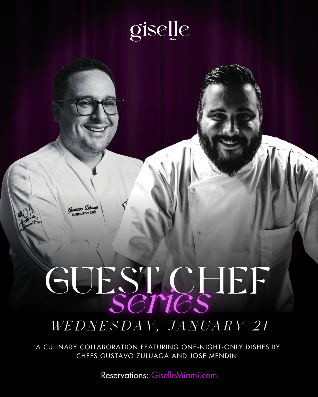 Giselle Miami, the downtown rooftop dining destination featuring globally inspired fusion cuisine, hosts acclaimed Chef José Mendín on Wednesday, January 21. Joining Executive Chef Gustavo Zuluaga, the event unites James Beard Award–recognized talent, Michelin-starred training, and globally renowned restaurant groups for a one-night-only Guest Chef Series dinner. Guests will enjoy exclusive à la carte menu offerings and elevated pairings as the chefs deliver a rooftop dining experience that celebrates collaboration, creativity, and Miami’s dynamic culinary scene for one unforgettable evening. For more information please visit https://gisellemiami.com/