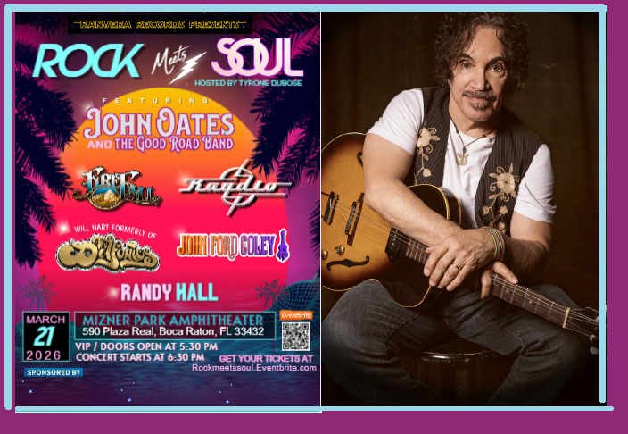 Boca Raton, FL — Classic rock and soul legends come together for one unforgettable night as Rock Meets Soul arrives at the Mizner Park Amphitheatre on Saturday, March 21, 2026, at 6:30 p.m.