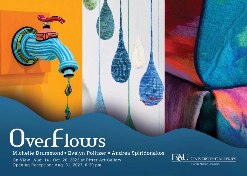 Delray Beach artist Michelle Drummond makes three-dimensional fiber art whose bright hues echo the Pop Artists of yore—Kandinsky, Lichtenstein, Warhol—while occupying a space between representation and abstraction. Her piece “Navigating the System,” for example, with its swirls of teal and white bands converging into a vortex, resembles both a question mark and a river—an endless flow of uncertainty, a metaphor perhaps for life itself. So it makes perfect sense that Drummond would be selected to participate in “Overflows,” a three-artist exhibition (alongside Evelyn Politzer and Andrea Spiridonakos) of artists whose tactile works conjure the non-tactile element of water. Thursday also marks the opening reception of “Threads, Folds and Rabbit Holes,” a solo exhibit by Kristy Deetz at FAU’s nearby Schmidt Center Gallery. If you can’t make it Thursday evening, “Threads” runs through Sept. 23, and “Overflows” runs through Oct. 28.