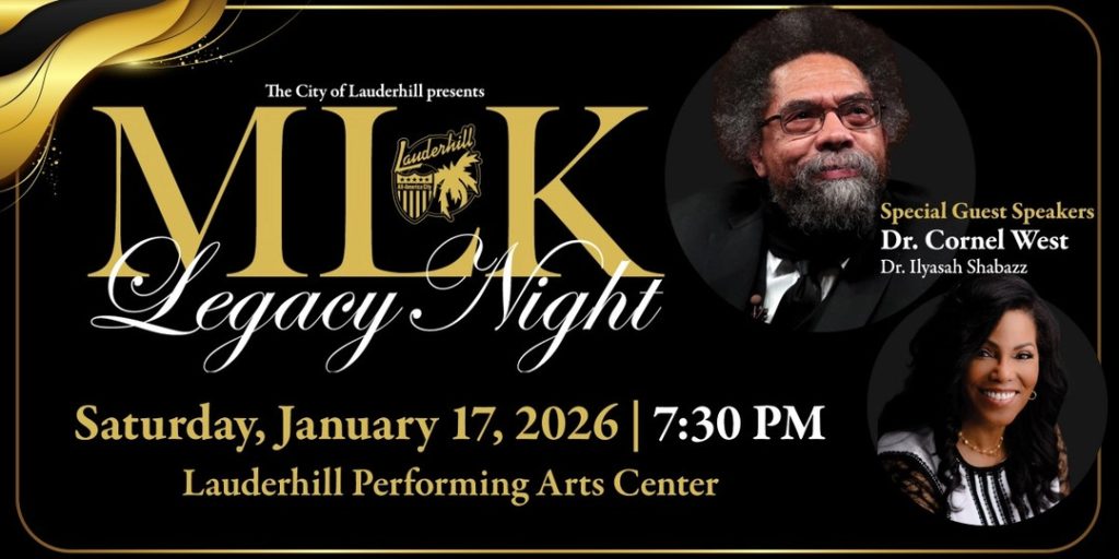 In honor of the Rev. Martin Luther King Jr.’s birthday, the City of Lauderhill has convened two impressive speakers for a fireside-style chat about the civil rights leader’s legacy and the current state of affairs for social justice and Black Americans. Dr. Cornel West, who ran for president in 2024 on an independent ticket, has published more than 25 works ranging from Black theology and progressive politics to Judaism and income inequality. Ilyasah Shabazz, the third daughter of Malcolm X and Betty Shabazz, is an academic, social activist, and author of the acclaimed 2002 memoir “Growing Up X.”