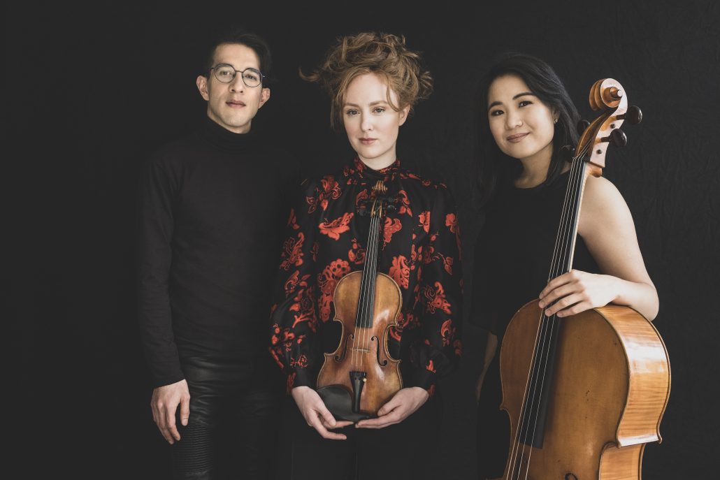 As their official bio states, the members of Merz Trio—violinist Brigid Coleridge, cellist Julia Yang and pianist Lee Dionne, met “in the middle of a snowstorm in NYC in December 2016 … and now we spend the majority of our lives together.” Named after a term coined by German polymath Kurt Schwitters, who believed that art can only occur in shared spaces, the Merz Trio has shared its space with disparate other creatives, from puppeteers to chefs, film directors to dancers. Not to mention poets: The award-winning group’s 2021 debut album, Ink, deconstructs Ravel’s Piano Trio in A minor of 1914, breaking it up into four movements interspersed with poetic spoken word from Jean Cocteau and others, and even popular songs of the period.