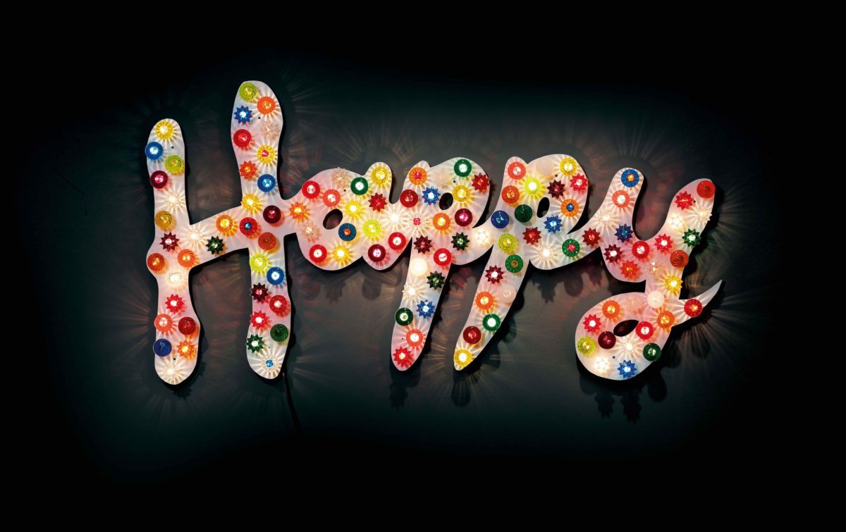 Focusing on contemporary art from the ‘50s to the present, “Happy!” includes household names—Rothko, Haring, Warhol, Yoko Ono—and emerging artists alike, and its breadth of mediums is delightfully varied, from painting to sculpture to installation to video. Viewers traverse the exhibition in such a way that they begin with works of straightforward bliss engineered to engender happiness in the spectator, like the art collective FriendsWithYou’s giant blissful clouds hanging from the second-floor ceiling, and wend toward works that explore its near-reverse.