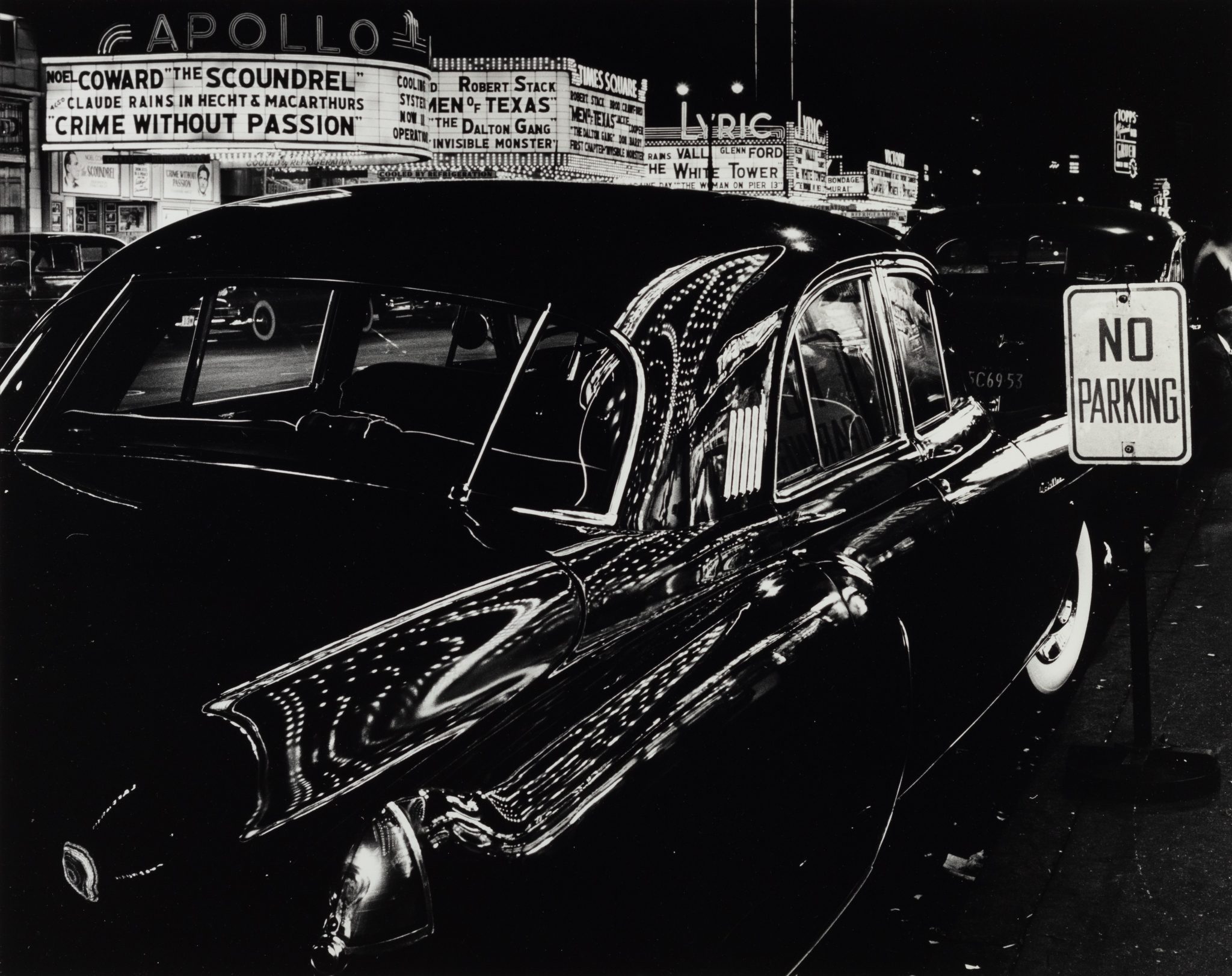 The remainder of the Museum’s absorbing exhibition explores Mitchell’s time in postwar New York City. Clearly, he had a predilection toward eccentric signage, from the marquees of movie theaters with their screaming, lurid titles (“This Woman is Dangerous”) to the businesses hawking haircuts, laundry services and shoe repair. We see novelties like 3D movie theaters and a billboard for a “leopard girl” on—where else?—Coney Island. In a city ablaze in advertising and nightlife, it’s easy to lose yourself, even after all these decades, in the teeming muchness of it all—reveling, by osmosis, in New York at its New Yorkiest.